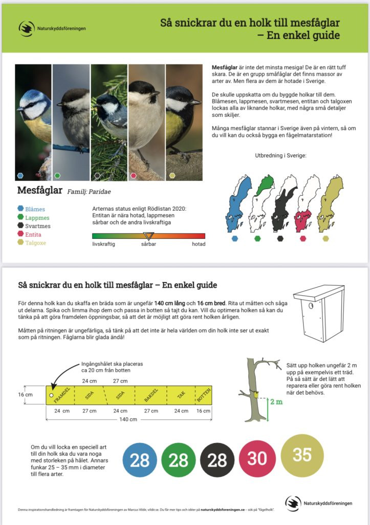 Det är lätt att bygga en fågelholk. En planka sågas itu för sidor, botten och tak. Man kan såklart göra ritningen själv, men när det nu fanns en lättillgänglig på nätet så kan man lika gärna använda den.
